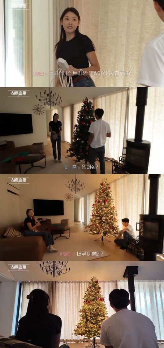 우여곡절 끝에 트리 점등식까지 함께한 두 사람. 한혜진 씨는 "너무 예쁘다"며 하준 씨와 함께 완성된 트리를 감상했습니다.
